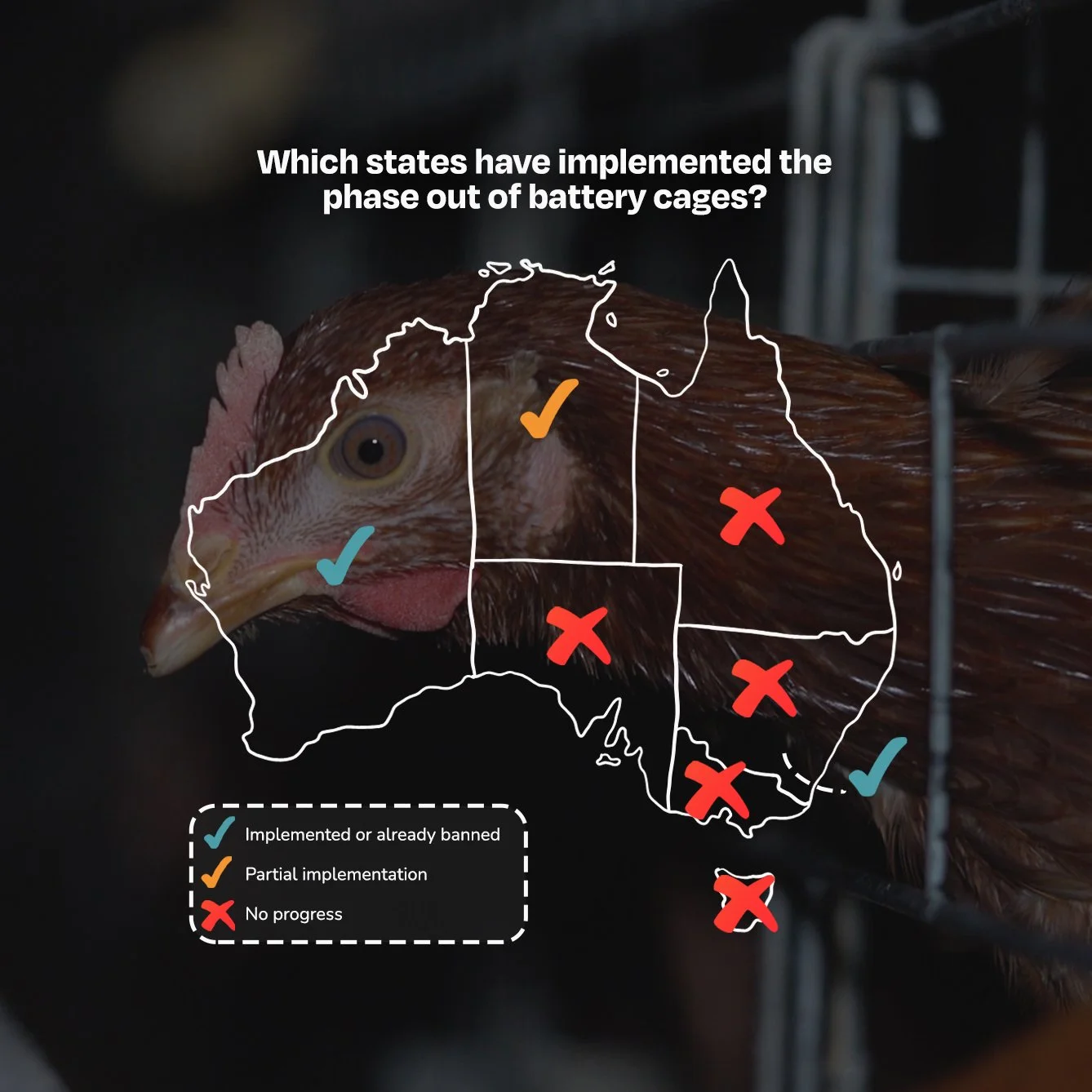 In December 2024, the Western Australian Government became the first state to regulate the phase out under the new Animal Welfare (Poultry) Regulations. The Regulations immediately ban the installation of new battery cages and include a phase out period for existing cages.