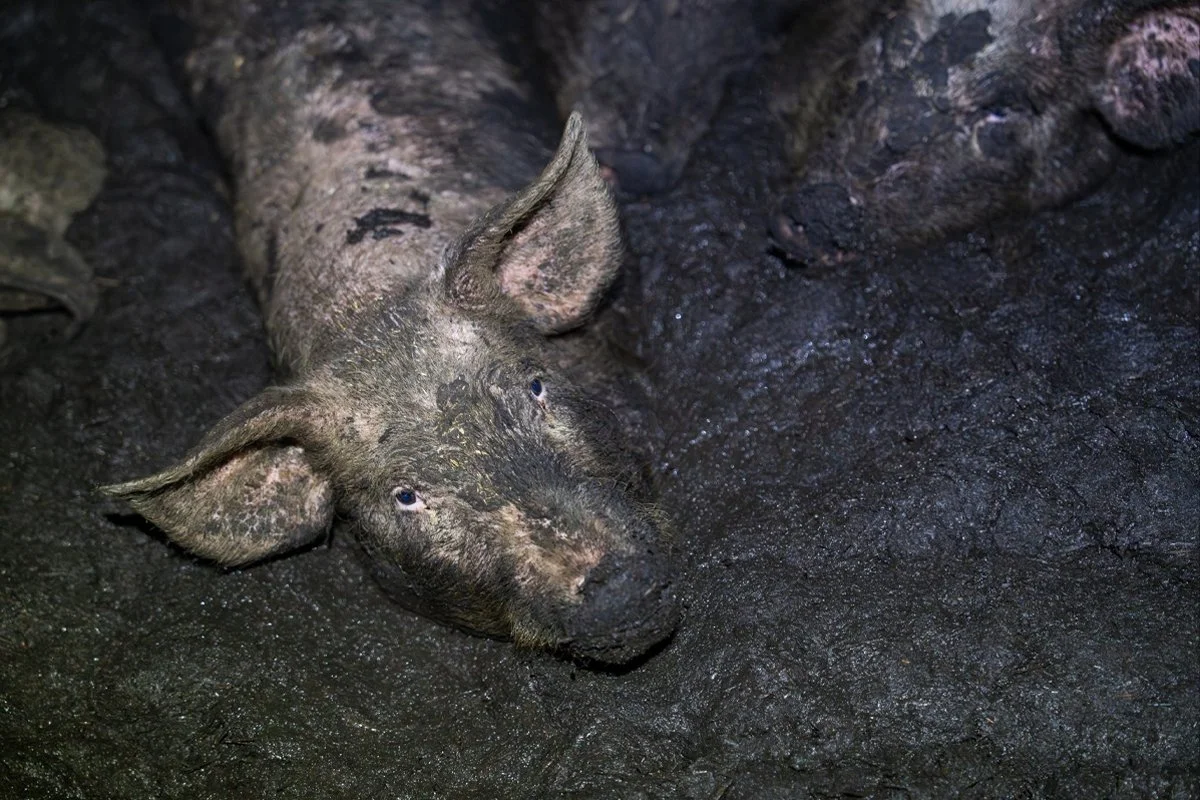 Pigs stuck in mud and waste that was so deep, they were forced to swim – many had already drowned